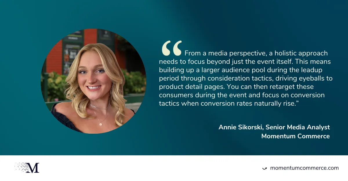 While getting the top spot on a popular search result can be a big win during a tentpole event, it needs to be part of a broader strategy. Consumers are discovering products and brands across a wide range of channels before coming to Amazon and converting. Brands need to use top-of-funnel tactics to get themselves in front of relevant customers in advance of the sale event in order to maximize sales.