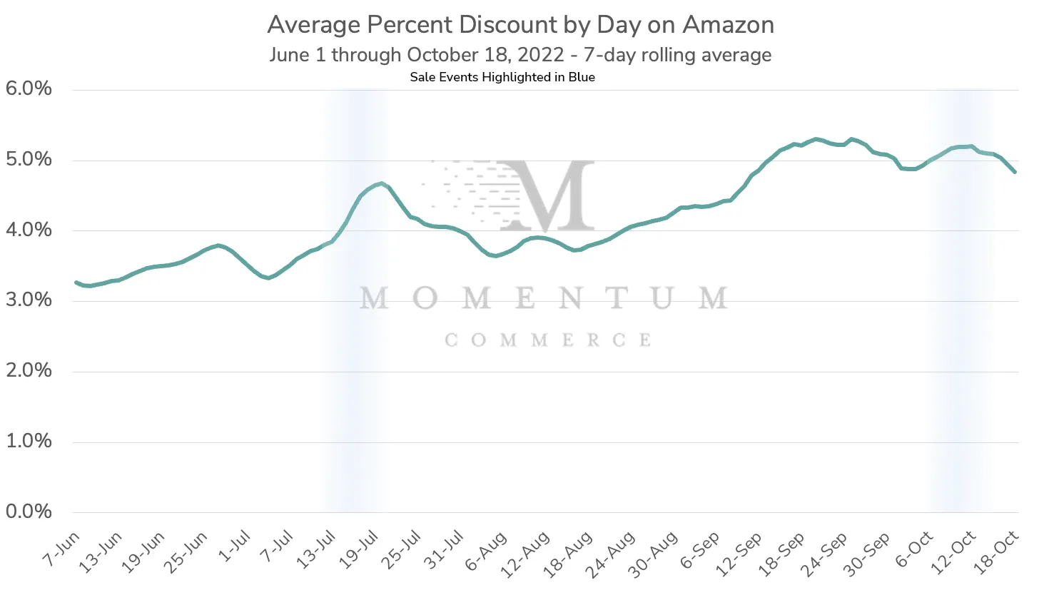 Momentum Commerce today announced a new analysis detailing a steady, months-long uptick in discounting activity across Amazon US. With inflationary pressures likely impacting holiday shopping budgets for consumers, this trend towards more pervasive discounting is a positive sign for Amazon to capture a greater share of holiday shopping revenue in the coming months.