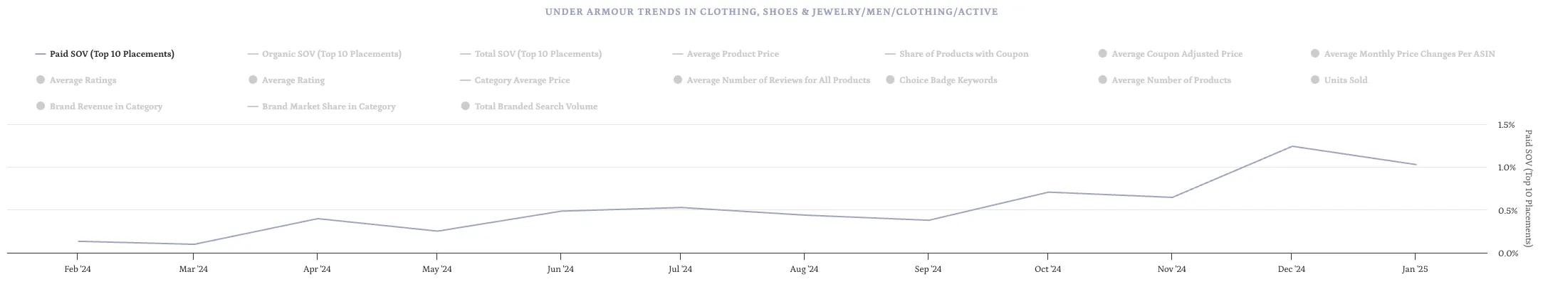 Under Armour’s paid share of voice (SOV) in the category tripled in three months - from 0.4% in September to 1.2% in December