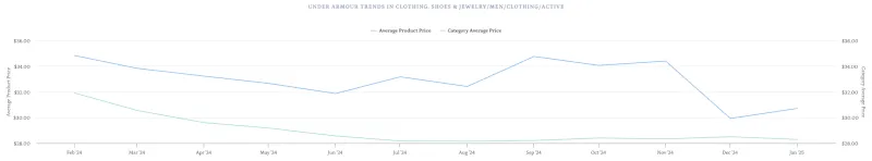 Overall, the average Under Armour Men’s Active Clothing product was discounted to within a $1.50 of the category average in December 2024