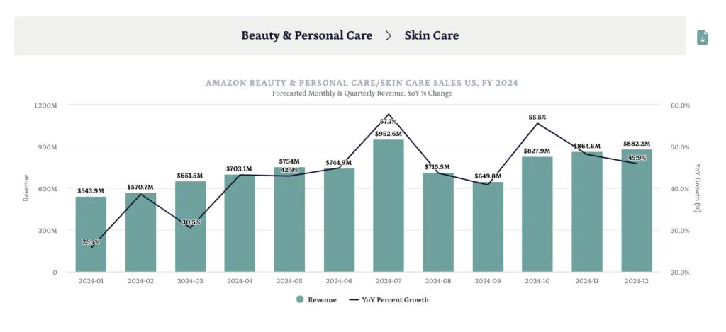 Similar to its parent category, Q4 is forecasted to be the highest sales quarter for Skin Care with an estimated $2.6B in revenue.