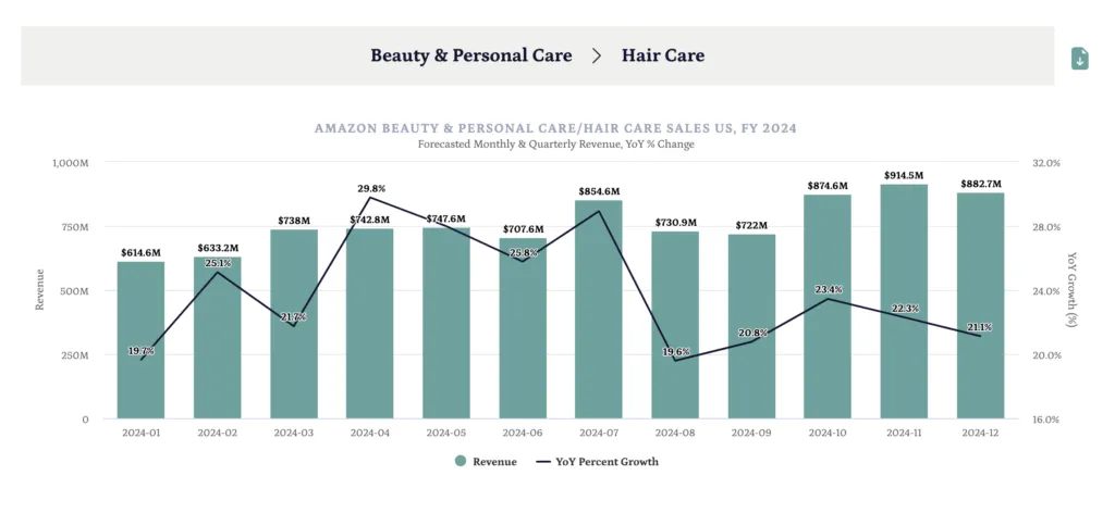 What is the forecasted growth for the Beauty & Personal Care category on Amazon US through 2024? How should brands in this category prepare their growth strategies? Over the next few months, we will be estimating specific categories’ 2024 revenue using our latest free tool, the Amazon Sales Forecast Dashboard.