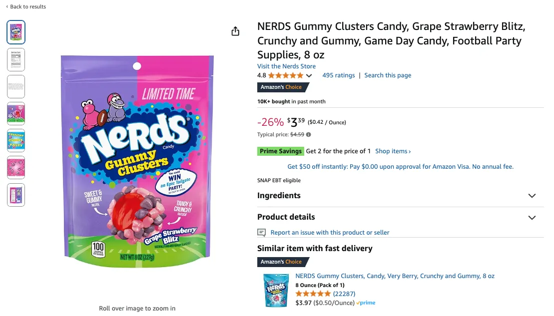 In the two-week period following that campaign, sales of the Nerds Gummy Cluster 8oz pack size hit more than $600K – more than 2X the entire product line sales across all of Amazon the prior two weeks